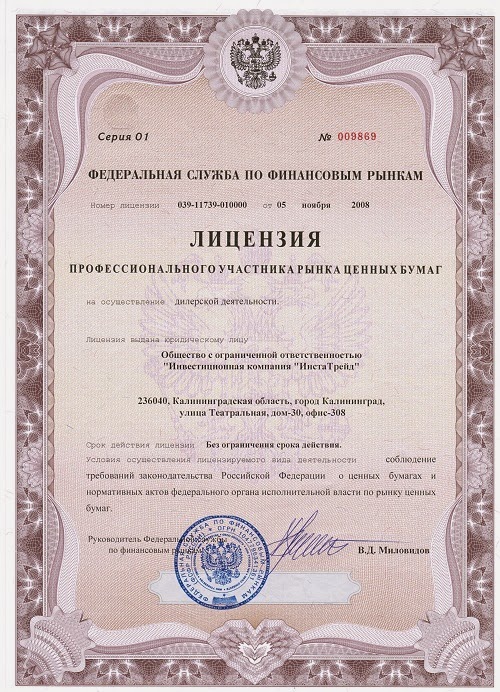 - Компания получила лицензии Федеральной службы по финансовым рынкам на осуществление профессиональной брокерской деятельности и деятельности на рынке ценных бумаг: